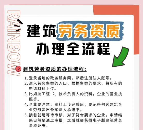• 隨著建筑施工勞務(wù)資質(zhì)正式由審批制改為備案制,大大縮短業(yè)務(wù)流程,企業(yè)申請(qǐng)施工勞務(wù)資質(zhì)可以做到當(dāng)天就能拿到資質(zhì)證書(shū)......